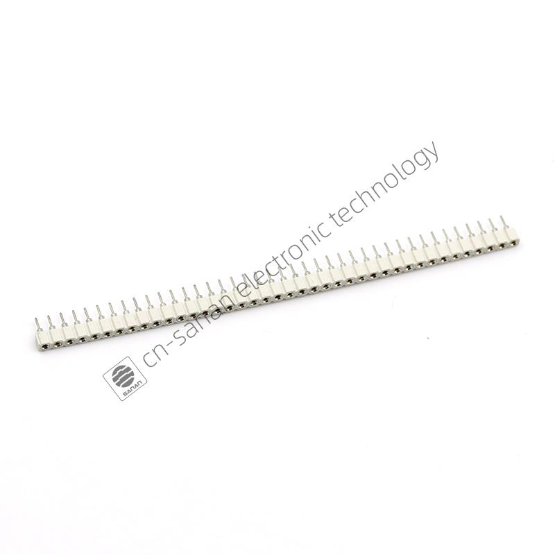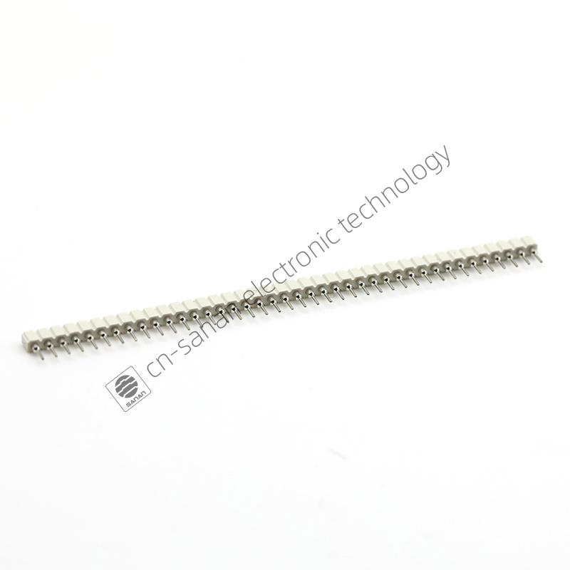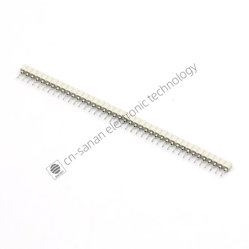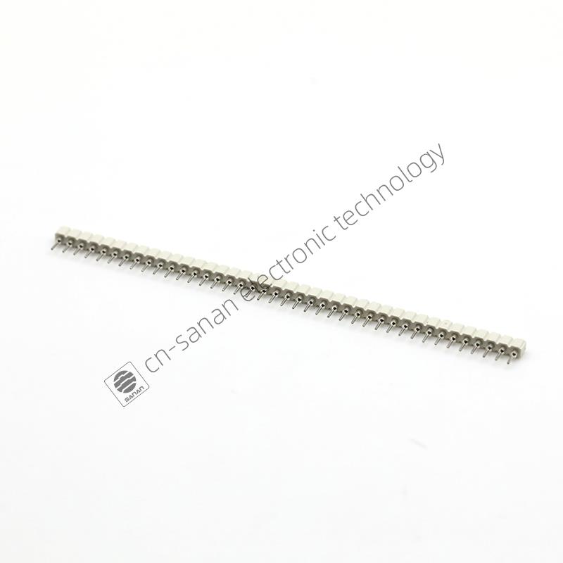 Sanan minangka produsen China 2.54mm White Round Tin Straight Pin Header. Konektor header pin kalebu sawetara cara sambungan sing beda. Umumé, sisih siji seri saka lencana kang soldered kanggo PCB, lan padha bisa salah siji ing sudhut tengen kanggo lumahing PCB (biasane disebut "lurus") utawa podo karo kanggo lumahing Papan kang (confusingly diarani minangka "sudut tengen" pins), iku konektor metallic kaku sing soldered menyang papan sirkuit lan kelet munggah kanggo nampa soket wadon.